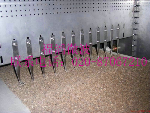 ![]() 微波設備組成:微波多模諧振腔加熱箱、高穩定微波源、微波抑制器、微波抗流門、物料傳動系統、排濕通風系統和排熱通風系統、測溫控溫系統、工業控制系統。